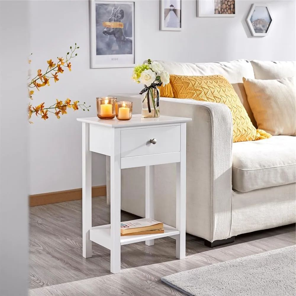 EFICIENTA COMPANIE LED Nachttisch Nachtschrank mit Led Licht, Modern Nachtkommode mit 2 Schubladen für Wohnzimmer, Schlafzimmer (Weiß, 1)